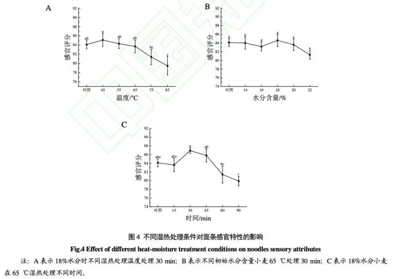 不同濕熱處理條件對面條感官特性的分析
